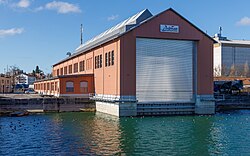 1851 wurde eine überdachte Anlage zur Montage von Dampfschiffen errichtet, die 1877 erweitert wurde. Sie brannte im Juli 1889 mit dem Dampfschiff König Karl vollständig ab, wurde aber 1890 wieder aufgebaut und 1931 vergrößert. Bei einem Luftangriff 1944 brannte die Werft zusammen mit dem Dampfschiff Friedrichshafen auf der Helling aus. Sie wurde provisorisch repariert und 1949/52 neu aufgebaut. Seit 1967 ist sie zentrale Überholungs- und Reparaturwerkstätte der Bodensee-Schiffsbetriebe.[13] Bei intensiven Landrevisionen werden jeden Winter, wenn der Schiffsbetrieb ruht, zwei Schiffe jeweils etwa vier Monate lang komplett saniert. So bleiben auch ältere Schiffe, wie die unter Denkmalschutz stehende Baden (Baujahr 1935), verkehrssicher. Ausgeführt werden die Arbeiten von Mitarbeitern der Werft, Fremdfirmen und den Besatzungsmitgliedern, die alle handwerklich ausgebildet sein müssen.[14] Neubauten, Umbauten und größere Reparaturen wurden dagegen von der Bodan-Werft bis zu ihrer Schließung 2011 durchgeführt. Wenn das größte Schiff der BSB, die Autofähre Friedrichshafen, zur Landrevision ausgewassert wird, bleiben auf jeder Seite nur fünf Zentimeter „Luft“. Für größere Schiffe ist die 60 Meter lange BSB-Werft zu kurz.[15][16]
