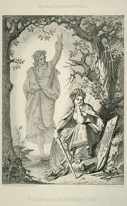 | Erinnerung an die Schillerfeier 1859 "erfunden und radirt von C. Jaeger."; erschienen im Nürnberger Künstlervereins-Album ; C. H. Zeh'sche Buch & Kunsthandlung in Nürnberg . | http://www.goethezeitportal.de/index.php | Karl Jäger | Datei:Karl Jäger Erinnerung an die Schillerfeier 1859 800x1296pixel.jpg | |