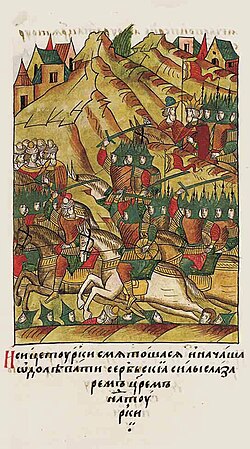 ![]() Russische Miniatur aus der Illustrierten Chronik Iwans IV. (Лицевой летописный свод), 1568–1576 |