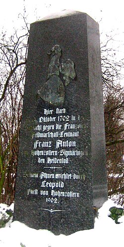 - ↑ hierbei wurde auch Franz Anton von Hohenzollern getötet