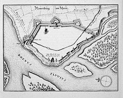 - ↑ Es handelte sich um 300–400 Mann eines in der Schweiz rekrutierten Söldner-Regiments; zur Rekrutierung s. Wieland S. 101 f.