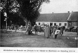| Schlacht bei Gumbinnen 1914 und Rückzug | Eigenes Werk (Aus eigenem Bestand) | Hardy.D in der Wikipedia auf Deutsch ( Originaltext: Eckhardt Dirks ) | Datei:Gumbinnen Rueckzug.jpg | |