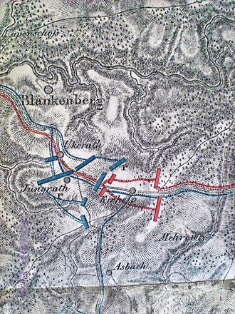 ![]() Ausschnitt aus der Karte von 1796 aus dem Buch Grundsätze der Strategie von Erzherzog Carl von Österreich |