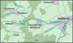| Verlaufskarte des Grabenbaches mit seinen unterschiedlichen Bezeichnungen im Verlauf | own work, used: Google Earth | Lencer | Datei:Verlaufskarte Grabenbach bei Meßkirch.png | |