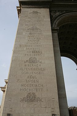 | Inscriptions of the Arc de Triomphe | Eigenes Werk | Rama More information on how to use my images | Datei:Arc de Triomphe mg 6837.jpg | |