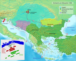 In der Schlacht bei Nikopolis am 25./28. September 1396 wurde ein mehrheitlich aus ungarischen und französisch-burgundischen Kreuzfahrern bestehendes Heer durch eine osmanische Streitmacht vernichtend geschlagen.