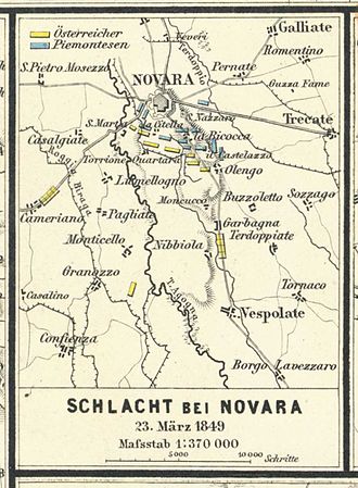 Bei Novara (in Norditalien, zwischen Turin und Mailand) schlugen die österreichischen Truppen unter Feldmarschall Radetzky am 23. März 1849 die Truppen des Königreiches von Sardinien-Piemont.