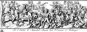 Da Auffenbergs Truppen von den vorrückenden Franzosen überrascht wurden, scheint Auffenberg nur einen kleinen Teil seiner Armee mobilisiert zu haben, etwa 5.500 Mann.[1] Der Verlauf der Schlacht ist jedoch umstritten. Ein Historiker spricht davon, dass einzelne österreichische Bataillone durch Kavallerieangriffe aufgerieben oder umzingelt wurden und daher kapitulierten.[2] Ein anderer Autor schreibt, dass die österreichischen Grenadiere sich als Viereck formierten und Kavallerieangriffen standhielten, bis französische Grenadiere angriffen.[3]