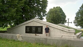 | Memorial commemorating Czechoslovak legionaries fallen in the battle of Zborov , located in the village of Kalinivka, Ukraine (back part of the local cemetery). | Selbst fotografiert Kameraposition 49° 37′ 49,54″ N, 25° 08′ 23,76″ O Dieses und weitere Bilder auf OpenStreetMap 49.630428; 25.139933 | Dezidor | Datei:Memorial of the Czechoslovak Legion in Battle of Zborov, 1917.jpg | |