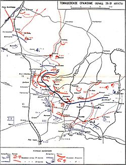 | Plate 16. Tomaševski battle ( Battle of Komarów in English) between 28-31 August (1914). | Зайончковский А.М. Мировая война 1914-1918 гг. (III издание. М.: Воениздат, 1938. Т.3: Схемы. 65 с.) http://atlases.narod.ru/atl_fww.html#fww_1938 | Андрей Медардович Зайончковский / Andrey Medardovich Zayonchkovsky (1862-1926) | Datei:Zayonchkovsky map16.jpg |