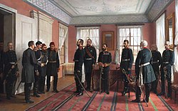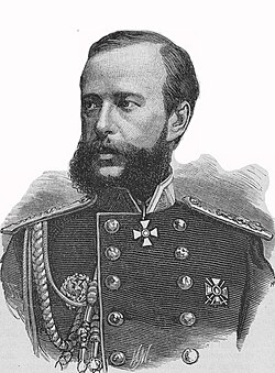 | Flagge des russischen Imperiums 1858—1883. Selbst erstellt in Inkscape . | Alexander's II Order(Ukase) 11 june 1858 - flag.jpg See also: National flags of Russia.jpg Известие о взятии Карса.jpg Alexander II of Russia and Naser al-Din Shah Qajar by M.Zichy (1874, Hermitage).jpg | Кёне, Бернгард Васильевич | Datei:Flag of Russia (1858–1883).svg | |