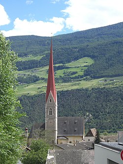 | Blick auf die Pfarrkirche Mariä Himmelfahrt (Schlanders) | Selbst fotografiert | GOBprojekt | Datei:Blick auf die Pfarrkirche.JPG | |