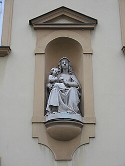 | Nischenfigur der hl. Anna (1. Hälfte 19. Jh.) mit Kind am Schloss Altmannsdorf in Wien-Meidling | Eigenes Werk | Buchhändler | Datei:Schloss Altmannsdorf Hl. Anna.JPG |