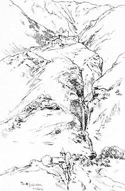 | Tony Grubhofer Annaberg 1899 Schloss Annenberg | August Abel: Zum Ortler nach Sulden und Trafoi : von Meran und Landeck, aus dem Unterengadin, von Zernez über den Ofenpaß, von Pontresina über Bernina und Bormio . Zeichnungen Tony Grubhofer. Ellmenreichs Bücher aus Tirol. Meran : Ellmenreich, 1899, Seite 24 | Tony Grubhofer | Datei:Tony Grubhofer Annaberg 1899.jpg |
