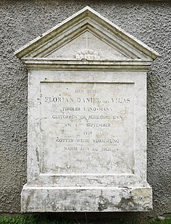 | Florian Daniel von Vilas' (+ Enn Castle 1839) Epitaph at the Montan cemetery | Eigenes Werk | Bartleby08 | Datei:Florian Daniel von Vilas Epitaph at Montan cemetery Enn 1839.jpg | |