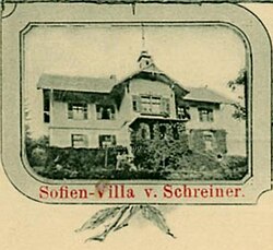 Das heutige Schloss geht auf ein im 16. Jahrhundert errichtetes Weingartenstöckl der Herrschaft Greißenegg zurück. Um 1780 wurde das Stöckl auf etwa zwei Drittel der heutigen Größe ausgebaut. Zumindest seit 1845 lässt sich eine Hauskapelle im ersten Stock des Gebäudes nachweisen, welche 1851 eine Messlizenz erhielt. Die Kapelle wurde später ins Erdgeschoß verlegt und verlor nach einer durch Umbauarbeiten im Jahr 1877 erfolgten Beschädigung die Messlizenz. Nachdem die Familie Wagen von Wagensperg, in deren Besitz sich das Stöckl zu jener Zeit befand, den Konkurs anmelden musste, wurde es 1877 von Moritz Ritter von Schreiner ersteigert. Dieser ließ es zu einem Herrenhaus ausbauen und es erhielt in der Zeit nach 1919 nach Erweiterungen sein heutiges Erscheinungsbild. Die Hauskapelle erhielt 1946 erneut eine Messlizenz als Heinrich Schreiner eine jährliche Messe am Annatag stiftete, welche jedoch bereits 1956 erneut erlosch. Die Kapelle wurde daraufhin profaniert.[1][2] 1953 übergibt Heinrich Schreiner das Anwesen der sozialen Fürsorge. Kurzzeitig wurde hier ein Kinderheim betrieben.[3]