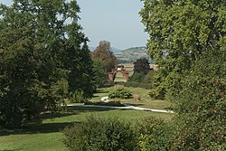 Schon vor 1808 (einer ersten Erwähnung)[3] wurde anlässlich der teilweisen Schleifung der alten Vorwerke von Graf August ein naturhafter romantischer Landschaftsgarten angelegt. Der Garten wurde dann – nach von Reisen zwischen 1818 und 1837 mitgebrachten Eindrücken – um Elemente des Englischen Gartens ergänzt.[4] Unter Graf August Johann und dem Herzog Victor Amadeus wurde der Park im Sinne eines Arboretum mit zahlreichen heimischen und exotischen Koniferen bepflanzt, um 1910 waren hier 175 verschiedene Nadelbaumarten zu finden.[3] Dieser alte Baumbestand und auch die reichhaltigen jüngeren Nachpflanzungen sind besonders wertvoll. Heute finden sich mehr als 2.000 Laub- und Nadelbäume und einzelne bereits mehr als 250 Jahre alte Baumriesen. Die Parkanlage gehört zu den bedeutendsten gartenarchitektonischen Denkmalen Österreichs und ist im Denkmalschutzgesetz genannt (Nr. 12 im Anhang zu § 1 Abs. 12 DMSG).