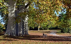Die drei Platanen im Schlosspark Grafenegg sind der letzte Rest einer 200 Jahre alten Allee. Der "wertvolle Baumbestand" des Schlossparks wird vom Denkmalschutz explizit erwähnt. | Eigenes Werk | Haeferl | Datei:Grafenegg - Schlosspark - 3 Platanen - 2.jpg |