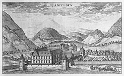 G. M. Vischers Käyserlichen Geographi, Topographia Ducatus Stiriae, Das ist: Eigentliche Delineation / und Abbildung aller Städte / Schlösser / Marcktfleck / Lustgärten / Probsteyen / Stiffter / Clöster und Kirchen / so es sich im Herzogthumb Steyrmarck befinden; Und anjetzoUmb einen billichen Preyß zu finden seyndBey Johann Bitsch Universitäts Buchhandlern /Auff dem Juden=Platz bey der guldenen Saulen. Graz 1681 Die Nummerierung der Dateien folgt der alphabetischen Reihung der Ortsnamen Dieses Bild zeigt das in Österreich unter der Nummer 36407 denkmalgeschützte Objekt. ( Commons , de , Wikidata ) | Topographia Ducatus Stiriae | Georg Matthäus Vischer | Datei:Vischer - Topographia Ducatus Stiria - 158 Hanfelden bei Unterzeiring.jpg |
