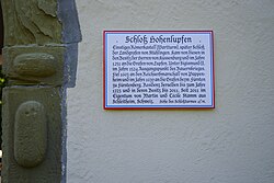 | Tafel der neuen Besitzerfamilie am Eingang zum Schloss Hohenlupfen | Eigenes Werk | Buchstapler | Datei:IMGP4409Tafel am Eingang Schloss Hohenlupfen.jpg | |
