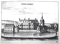 | Schloss Immendorf , Niederösterreich. Stich von Georg Matthäus Vischer . Aus Topographia Austriae inferioris , 1672. | Georg Matthäus Vischer Topographia Austriae inferioris | Georg Matthäus Vischer; scan by Feldkurat Katz | Datei:Georg Matthäus Vischer Immendorf.jpg |