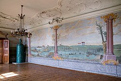 Wiederhergestellte Wandmalerei in einem Zimmer im 1. Stock des Haupttraktes des Schlosses Juliusburg , auch als Schloss Stetteldorf bezeichnet, in der niederösterreichischen Marktgemeinde Stetteldorf am Wagram . | Eigenes Werk | C.Stadler/Bwag | Datei:Stetteldorf - Schloss, Zimmer (2).JPG | |
