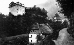 | Schloss Klaus im Jahr 1906. Im Vordergrund ist noch das alte „Badhäusl“ zu sehen | Raimund Ločičnik: Das Steyrtal Sutton Verlag 2010 ISBN 978-3-86680-647-4 S. 26 | unbekannt | Datei:Schloss Klaus 1906.png |
