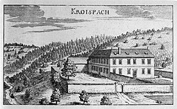 | Schloss Kroisbach, Graz, Stich von G. M. Vischer | Topographia Ducatus Stiriae | Georg Matthäus Vischer | Datei:Vischer - Topographia Ducatus Stiria - 118 Graz Kroisbach.jpg |