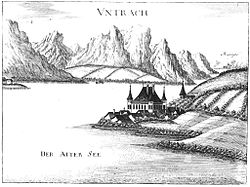 | Schloss Unterach (Untrach) nach einem Stich von Georg Matthäus Vischer von 1674 | Topographia Austriae superioris modernae | Georg Matthäus Vischer | Datei:Unterach-neu.jpg | |