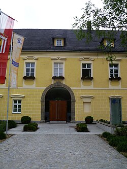 | Das 2014 fertiggestellte Krisenzentrum bei Schloss Leonstein in Grünburg. Am rechten Bildrand ist ein Stück des Schlossturms zu sehen. Das kleine Nebengebäude im Vordergrund gehört zur Schlossanlage. Blick vom Steyrtalradweg | Eigenes Werk | Christoph Waghubinger ( Lewenstein ) | Datei:Krisenzentrum bei Schloss Leonstein 1.jpg | |
