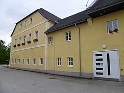 | Blick vom Steyrtalradweg auf die Pension Pfaffeneder (vormals Hotel Grawatsch) in Ober grünburg , Leonsteinerstraße 40. Es handelt sich um die ehemalige Hoftaverne von Schloss Leonstein . | Eigenes Werk | Christoph Waghubinger ( Lewenstein ) | Datei:Pension Pfaffeneder in Gruenburg 1.jpg | |