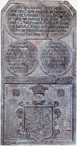 | Epitaph mit Relief-Wappenstein für die Adelsfamilie Grotta von Grottenegg (bezeichnet 1637) in der Annakapelle der Pfarr- und Wallfahrtskirche von Maria Gail , Statutarstadt Villach , Kärnten , Österreich , EU | Eigenes Werk | Johann Jaritz | Datei:Villach Maria Gail Wallfahrtskirche Wappengrabstein Grotta von Grottenegg 13022015 9840.jpg |