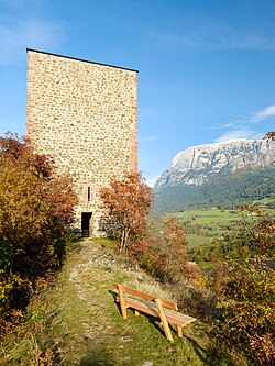 | Diese Datei zeigt das Baudenkmal mit der Nummer 17943 in Südtirol. | Eigenes Werk | 2015 Michael 2015 | Datei:Pulverturm Prösels und Schlern.jpg | |