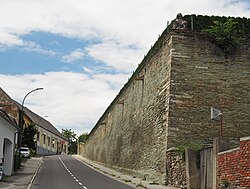 | Die Böschungsmauer von Schloss Rechnitz in der Schloßberggasse (Schlossberggasse), 7471 Rechnitz (Burgenland, Österreich) | Eigenes Werk | Papergirl | Datei:Wall of Rechnitz Castle, 2018.jpg |