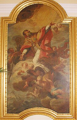 | Dieses Altarbild befindet sich heute im Stigenaufgang des Rathauses von Stockerau: Altarbild hl. Nikloaus (Johann Georg Schmidt, um 1720) ursprünglich in der Kapelle des Jagdschlosses Schmida | Eigenes Werk | DrBigT | Datei:Schlosskapelle Altarbild Hl. Nikolaus.jpg | |