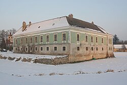 Die Bausubstanz des Nordteiles stammt vom Jagdschloss der Renaissance aus dem 16. Jahrhundert. Der Südtrakt mit der Kapelle ist erst 1719, gleichzeitig mit der einheitlichen Fassadierung des gesamten Gebäudes im Barockstil entstanden.