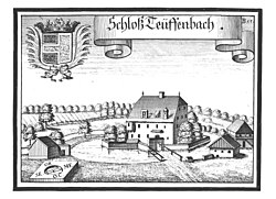 Das Schloss entstand aus einem ehemaligen Wasserschloss. Es befand sich im Zentrum des Dorfes Unterteufenbach und war von einem kreisförmigen Wassergraben umgeben. Heute befinden sich die Überreste hinter der Kirche von Unterteufenbach.