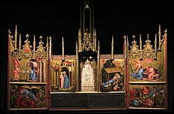 - ↑ Gert Ammann: Zur Geschichte der Provenienz des Altares von Schloss Tirol. In: Veröffentlichungen des Tiroler Landesmuseums Ferdinandeum. 80, 2000, S. 57–66 (zobodat.at [PDF]).