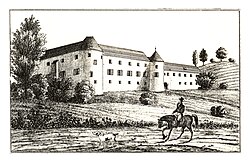 | J. F. Kaiser - lithographirte Ansichten der Steyermärkischen Städte, Märkte und Schlösser, Graz 1824-1833 Joseph Franz Kaiser (1786–1859) Alternative Namen J. F. Kaiser Beschreibung österreichischer Drucker und Herausgeber Geburts-/Todesdatum 11. März 1786 19. September 1859 Geburts-/Todesort Graz ( Steiermark ) Graz Normdatei : Q1499963 VIAF : 303124203 ISNI : 0000000030830153 GND : 129880159 LCCN : n87141671 NLP : a0000002496030 WorldCat creator QS:P170,Q1499963 . Scanprojekt Community Projektbudget 2012 Dieses Bild oder PDF wurde im Rahmen des GLAM-Projekts Buchscanner mit Unterstützung von Wikimedia Deutschland und Wikimedia Österreich als Teil des Community-Projekts zur Erfassung von urheberrechtsfreien Werken erstellt. Die von den Dokumenten dieser Kategorie beschriebenen Objekte befinden sich im heutigen Österreich . Originalscans bei Bedarf bitte bei Hubertl anfragen. Deutsch English magyar italiano македонски sicilianu +/− Public domain Public domain false false Dieses Werk ist gemeinfrei , weil seine urheberrechtliche Schutzfrist abgelaufen ist. Dies gilt für das Herkunftsland des Werks und alle weiteren Staaten mit einer gesetzlichen Schutzfrist von 100 oder weniger Jahren nach dem Tod des Urhebers . Parallel zu dieser Lizenz muss auch ein Lizenzbaustein für die United States public domain gesetzt werden, um anzuzeigen, dass dieses Werk auch in den Vereinigten Staaten gemeinfrei ist. Es wurde festgestellt, dass diese Datei frei von bekannten Beschränkungen durch das Urheberrecht ist, alle verbundenen und verwandten Rechte eingeschlossen. https://creativecommons.org/publicdomain/mark/1.0/ PDM Creative Commons Public Domain Mark 1.0 false false Dieses Bild zeigt das in Österreich unter der Nummer 36580 denkmalgeschützte Objekt. ( Commons , de , Wikidata ) | Kaiser - lithographirte Ansichten der Steyermärkischen Städte, Märkte und Schlösser, Graz 1824-1833 | Published by J. F. Kaiser, Graz, Scan and postprocessing by Hubertl | Datei:308 Schloss Trautenburg, Schloßberg, Arnfels - J.F.Kaiser Lithografirte Ansichten der Steiermark 1830.jpg | |