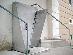 Schloss Trautenfels, Tür-Stiege von Architekt Manfred Wolff-Plottegg 1992 | Eigenes Werk | E.mil.mil | Datei:Trautenfels2 (22)a.jpg | |