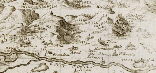(ca. 1700, Ausschnitt aus Insprug mit der Gegend auf 2 Stunden) |