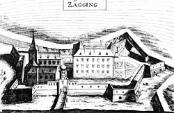 | Schloss Zagging aus dem 11. und 12. Jhdt.; Stich von M. Vischer 1674 | Topographia archiducatus Austriae Inferioris modernae | Georg Matthäus Vischer | Datei:Zagging-Vischer.JPG | |