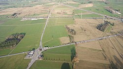| Luftaufnahme des Kreisverkehrs in Lustenau, Vorarlberg , Österreich - Schweizerstraße und Hohenemser Straße (L203). Links unten beim Kreisverkehr, das traditionelle Gasthaus „Schweizerhaus“, in dem zum Zeitpunkt der Aufnahme ein asiatisches Restaurant beheimatet ist. Oben quer durch das Bild zu sehen, die Rheintalautobahn (A14/E60/E43). Links hinten ein Teil des Europaschutzgebietes "Gsieg", rechts vorne, ein Teil des Europaschutzgebietes "Obere Mäder" (beide braun). | Eigenes Werk | Asurnipal | Datei:Dornbirn-Lustenau-Hohenems-Kreisverkehr-Schweizerstrasse-01.jpg | |