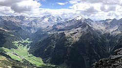 | Schneebiger Nock (rechts der Mitte zwischen Gelttal (rechts) und Bachertal (links), davor Rein in Taufers (links vorn) mit Reintal, im HIntergrund Großer Rotstein, Mulle, Winkelspitze, Lenkstein, Barmer Spitze, Hochgall, Hochgallhütte, Wildgall, Hochflachkofel (links vom Schneebigen Nock mit Rieserferner) sowie Gelttalspitze, Rieserfernerhütte, Schwarze Wand und Wasserkopfspitze (rechts vom Schneebigen Nock) | Eigenes Werk | Stefan.straub | Datei:Schneebiger noch lage.jpg | |