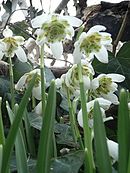 | Galanthus nivalis[11] L. | Kleines Schneeglöckchen[11] oder Gewöhnliches Schneeglöckchen[9] | 2 – 3 (4) | ![]() |