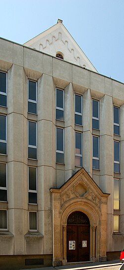 | Die Außenfassade der Kapelle der Armen Schulschwestern von Unserer Lieben Frau in der Fünfhausgasse, Rudolfsheim-Fünfhaus, Wien.Die Kapelle steht unter Denkmalschutz. | Eigenes Werk | Herzi Pinki | Datei:Chapel, School Sisters of Notre Dame, Vienna.jpg | |