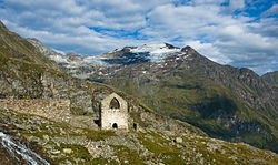 | Das ehemalige Radhaus der Materialseilbahn der Bergwerkssiedlung auf dem Goldberg, nahe dem jetzigen Schutzhaus Neubau. Im Hintergrund der Hocharn (3254m). | http://www.piqs.de/fotos/user/hannes_m/83492.html | hannes_m | Datei:Hocharn, Radhaus Goldberg.jpg | |