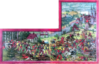 | Darstellung der Schlacht bei Schwaderloh/Triboltingen während des Schwabenkrieges 1499 | Swiss Chronicles of Johann Stumpf (1500 - 1578). Scan from Meyer, F.: Schweizergeschichte von der Bundesgründung bis Marignano , Lehrmittelverlag des Kantons Thurgau, Frauenfeld 1976. No ISBN. | Johann Stumpf | Datei:Battle at Schwaderloh.jpg | |