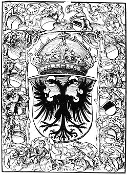 | Coat of arms of Maximilian of Austria as emperor | Eigenes Werk | Geraldiker | Datei:Coat of arms of Maximilian of Austria as emperor.svg |