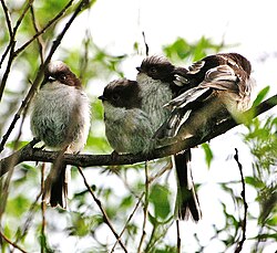 | Young long tailed tits in a hedge near Gröbenzell in Bavaria | Eigenes Werk | N p holmes | Datei:Aegithalos caudatus juveniles.JPG | |